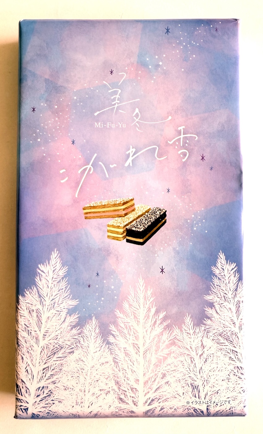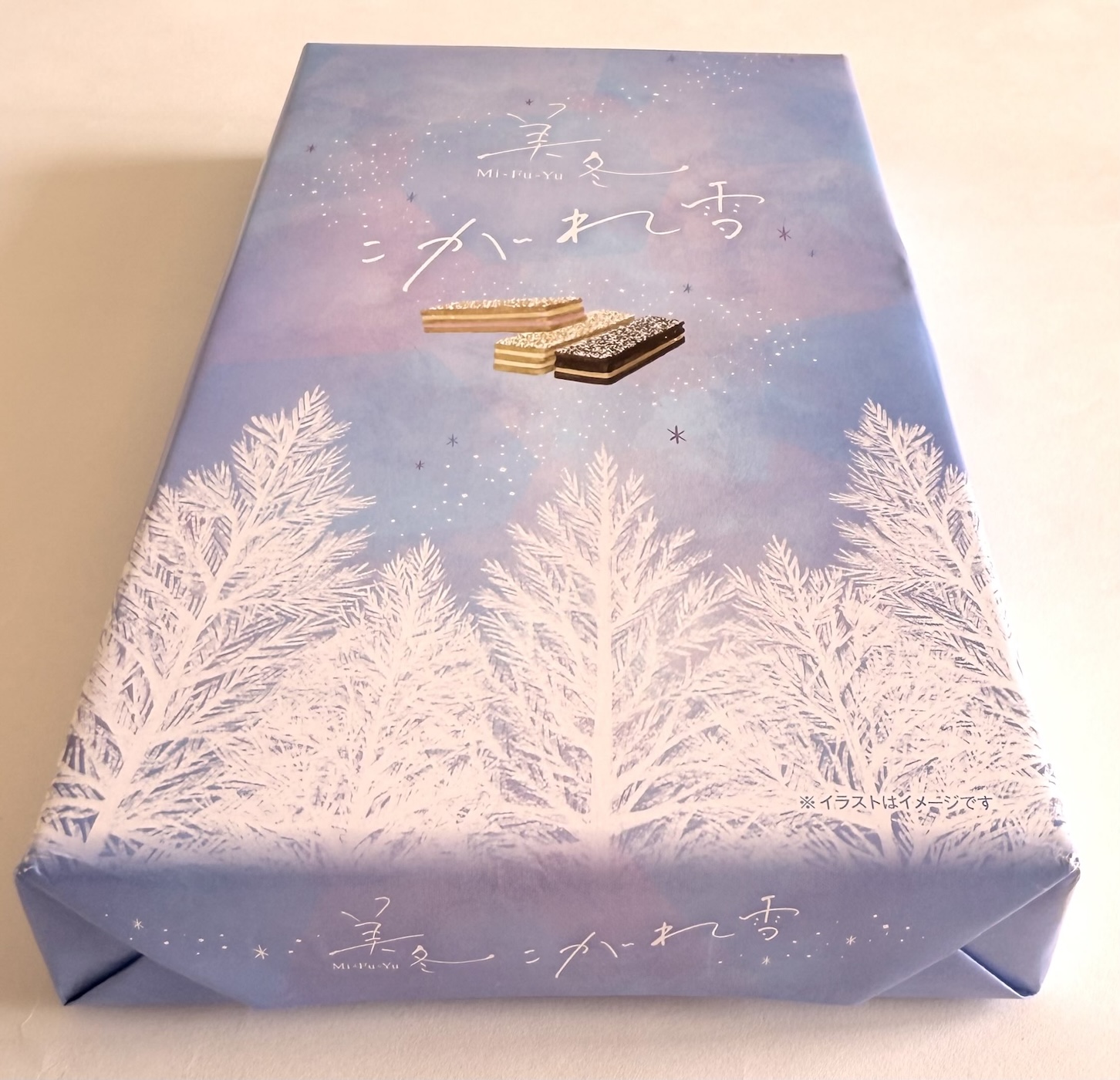 旅行の帰り道、飛行機の時間まで少し余裕があったので、空港の土産コーナーをぶらぶらしていたところ、この「美冬 こがれ雪」のパッケージが目に留まりました。