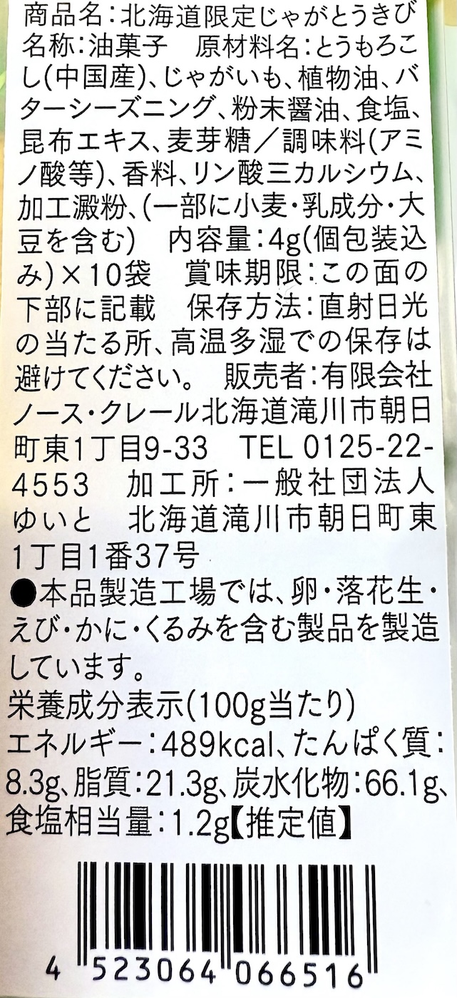 「じゃがとうきび」は、北海道産のじゃがいもととうもろこしを組み合わせた、素朴で軽やかなスナック菓子です。