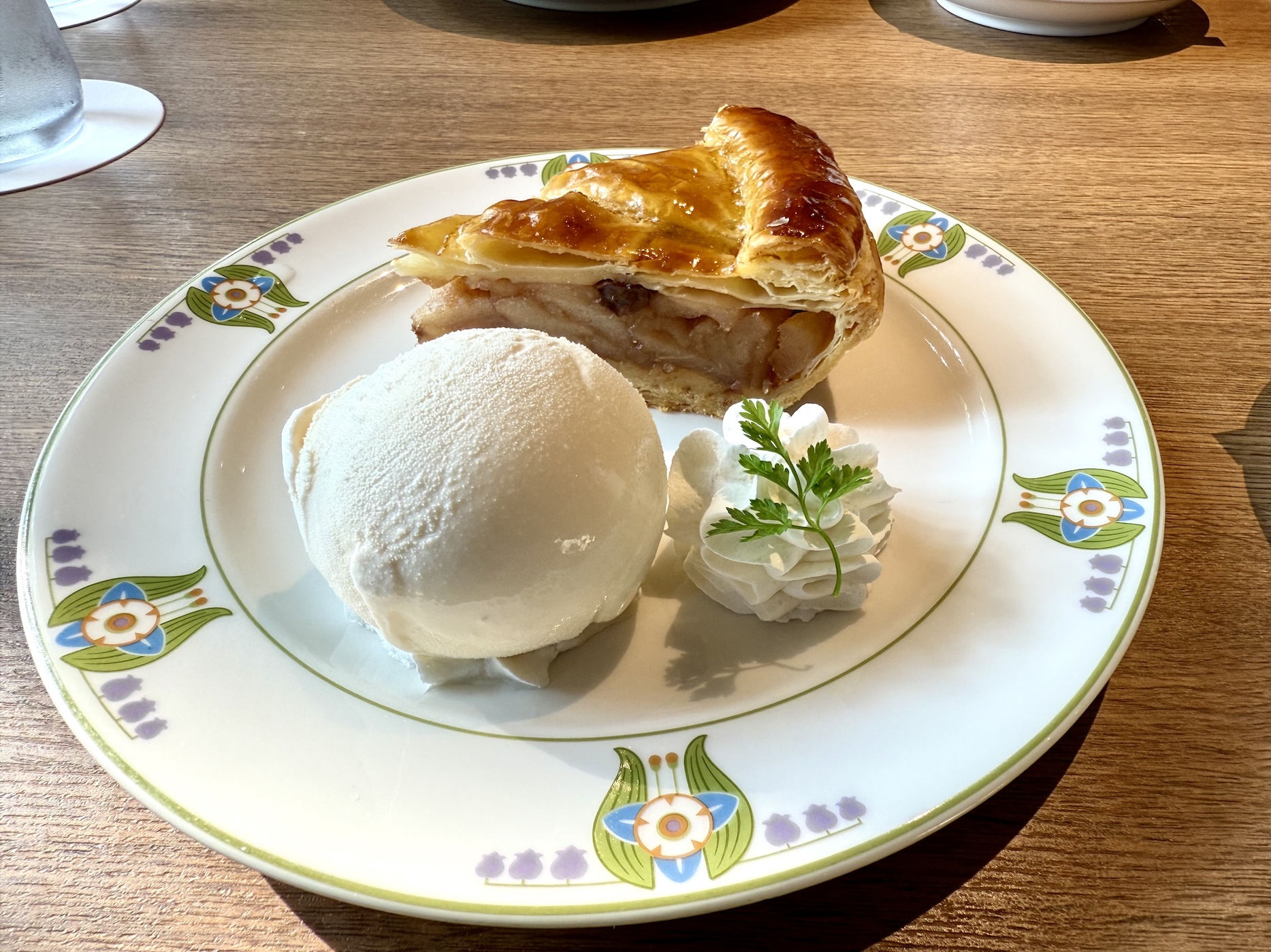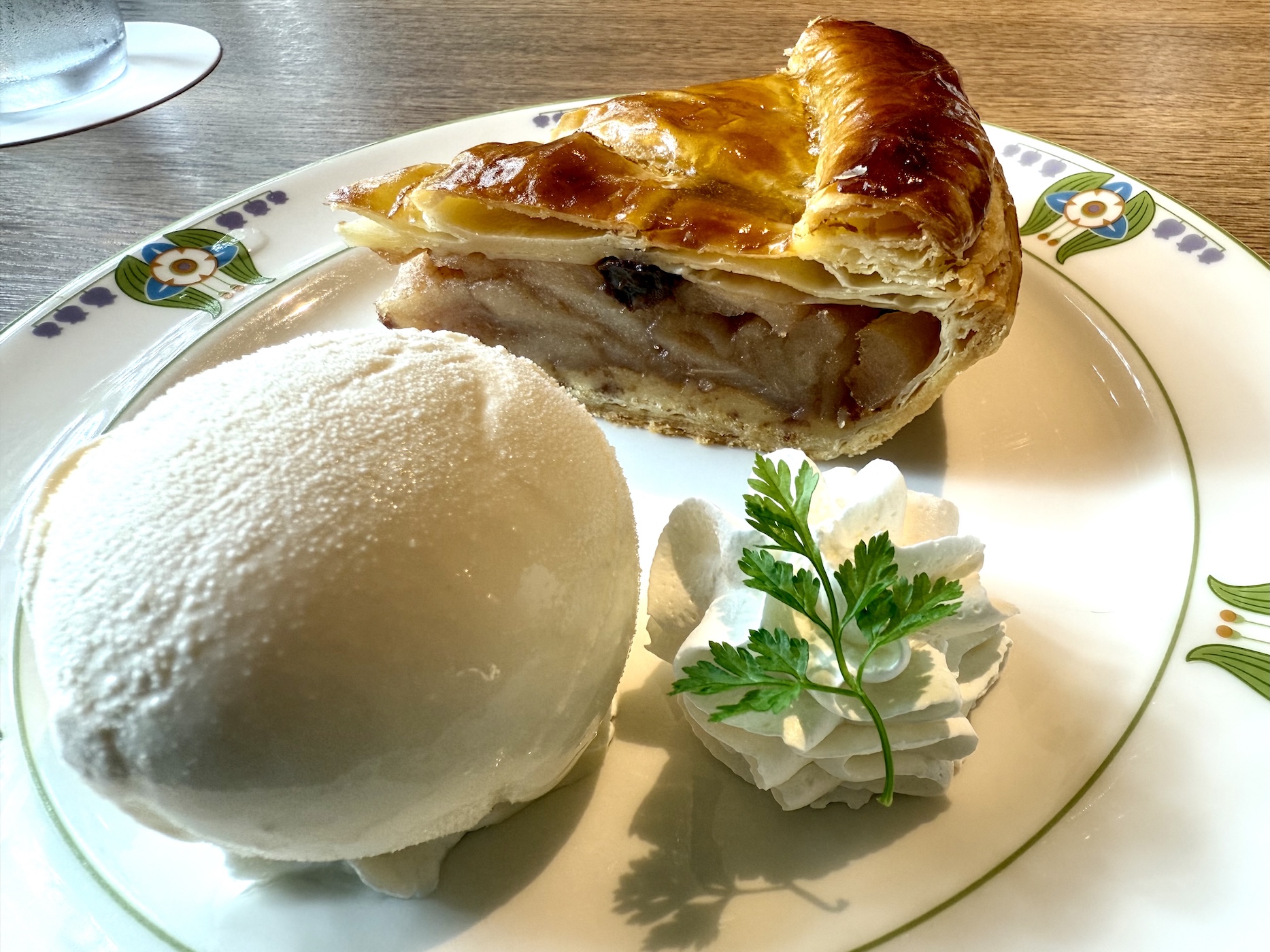 温かいアップルパイには、りんごがぎっしり詰まっていて、甘すぎない。